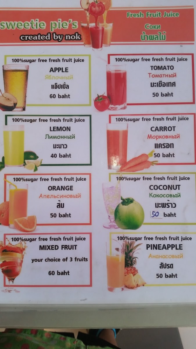 Welcome to Sweetiepie Juice's Bar and Cafe, a delightful oasis tucked away in the vibrant tattoo and street art area of Pattaya, Thailand. Here, the menu transports you to a realm of refreshing flavors, featuring a variety of fresh juices, smoothies, and energizing protein shakes. Each beverage is lovingly crafted, boasting ingredients like ripe tomatoes, crisp carrots, and sweet bananas. Customers rave about the exquisite taste and affordable prices, with unique 3-mix fruit shakes for just 60 baht!